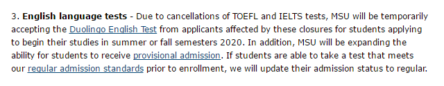 密歇根州立大學,在近期給學生發的郵件中說明可以臨時接受Duolingo的成績