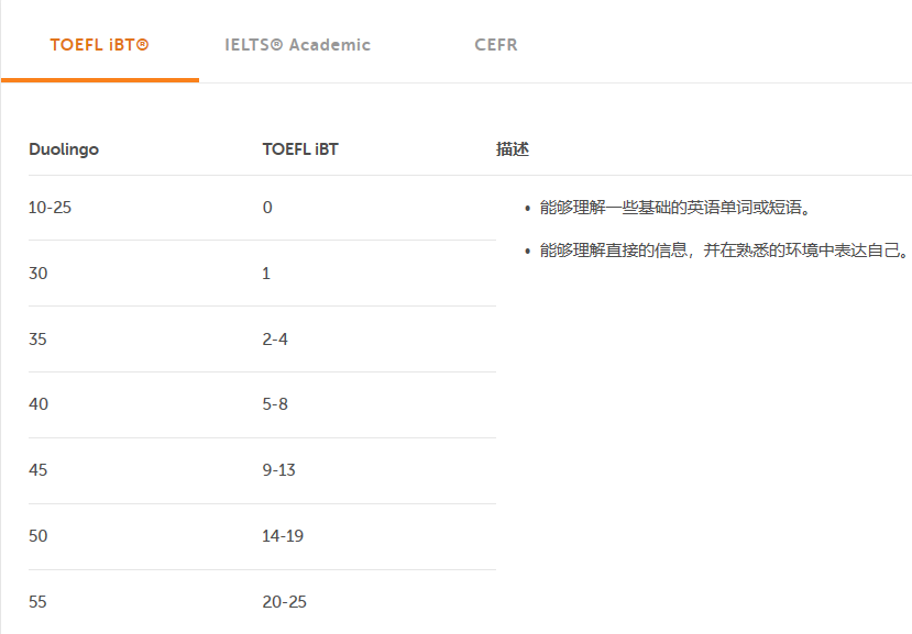 根據以往的經驗,很多同學考出來的Duolingo成績,還不如托福高;很可能是對題型也不熟悉,不像托福,考前都做了大量的練習。因此,參考下面的分數對照表,再決定是否提交給學校。